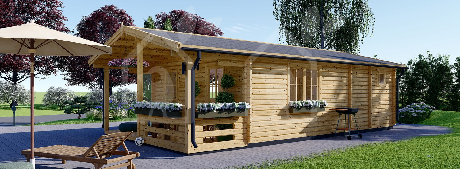 The Argo mobile home features our wonderful Nordic pine and Scandinavian spruce timbers. Grown slowly for the ultimate in natural insulation, we chose the extra- thick 2.6'' log walls for this design. When paired with the double-glazed windows and doors it is noticeably snug from season to season. The confidence in our timber shines through thanks to our 10-year anti-rot guaranteeThe Argo mobile home may be free from planning regulations depending on your circumstances; ask us for more information.