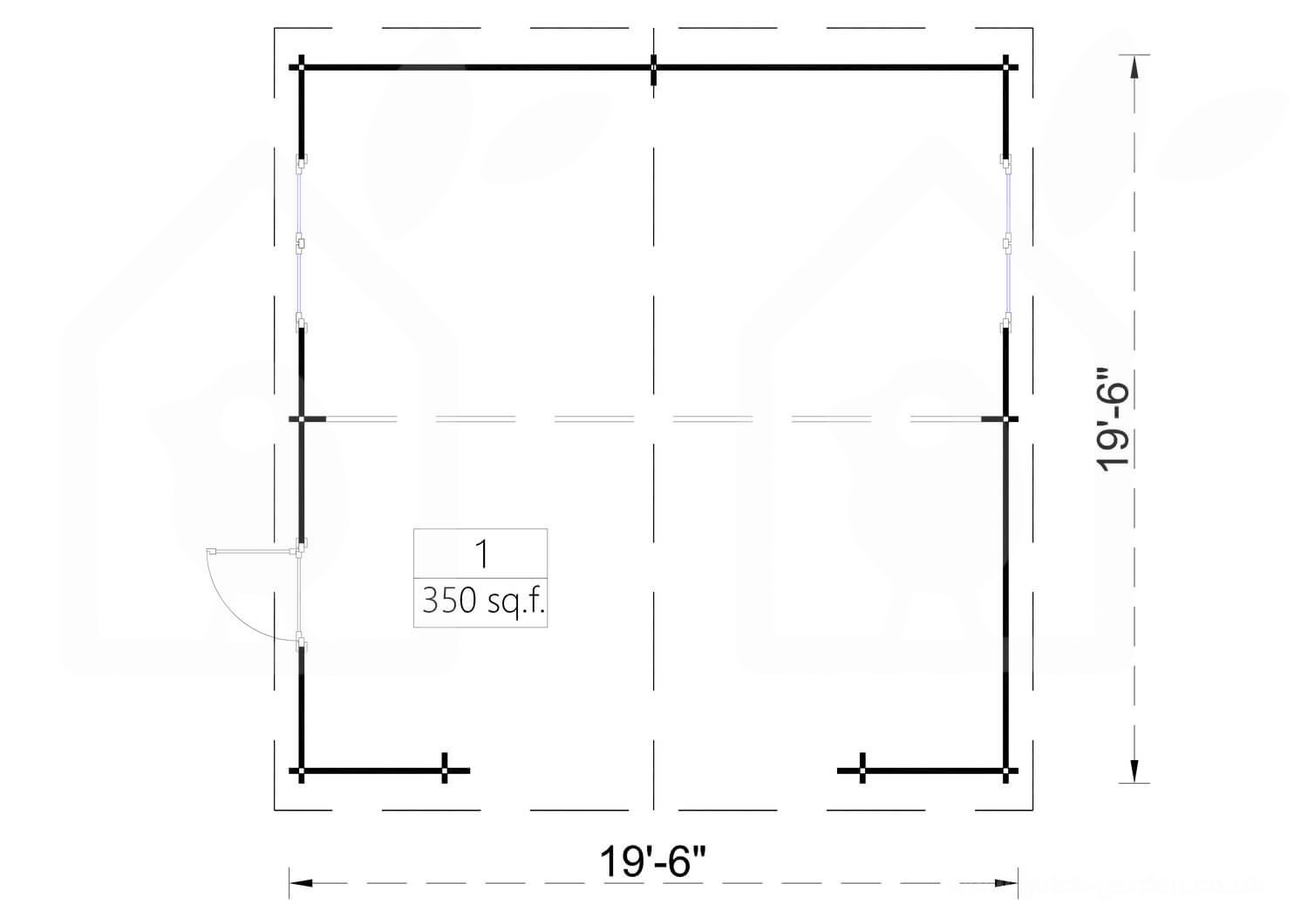 | External dimensions (width x depth) | 19'6" x 19'6" |