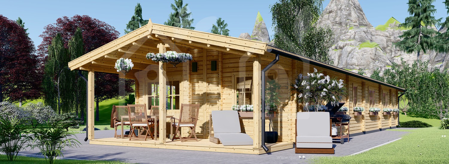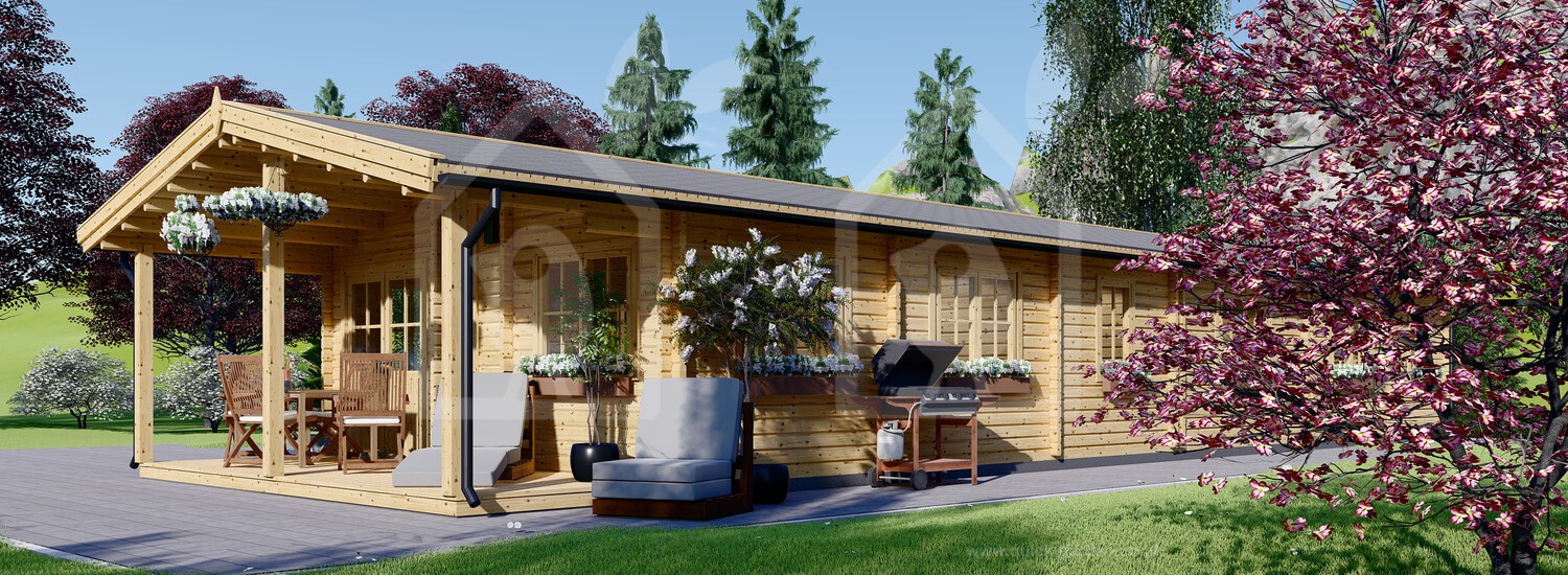 Our log cabins come with double-glazed windows and doors that employ finger-joint technology that significantly reduces moisture in the building.