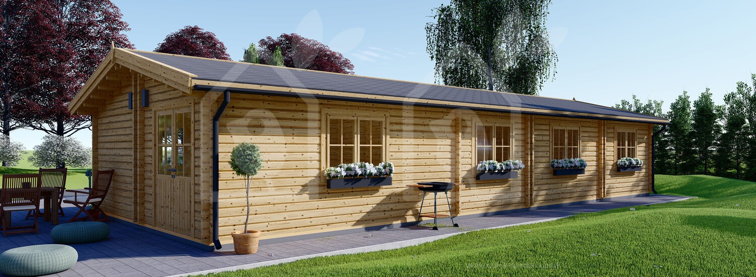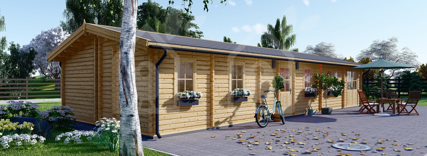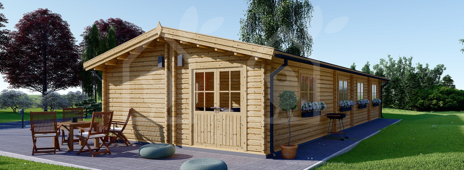 Our log cabins come with double-glazed windows and doors that employ finger-joint technology that significantly reduces moisture in the building.