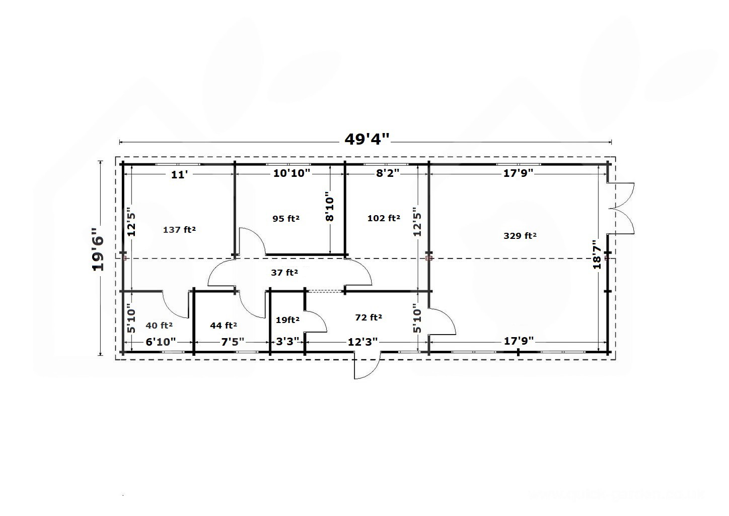 | External dimensions (width x depth) | 19'6" x 49'4" |