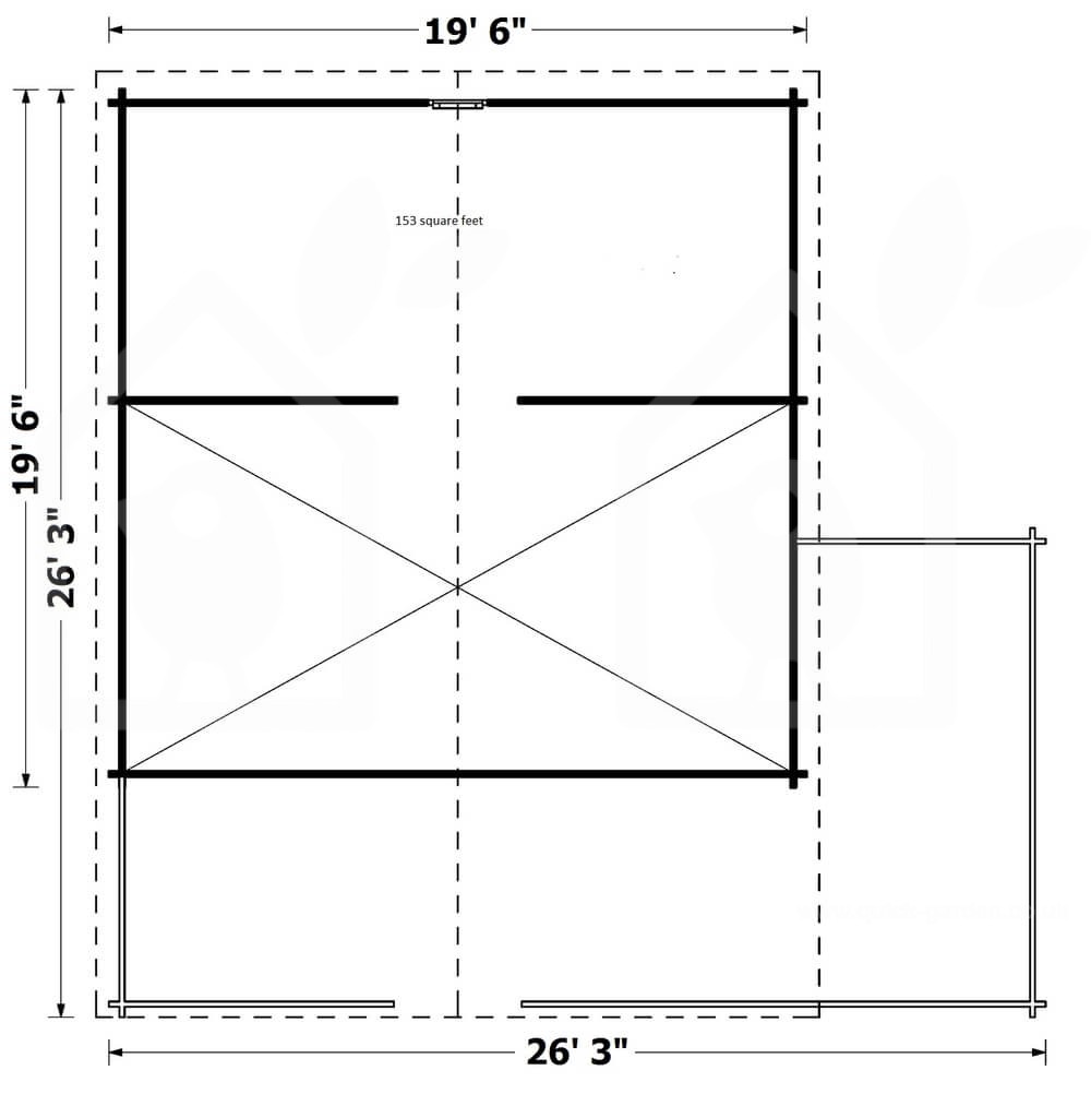 | External dimensions (width x depth) | 19'6" x 19'6" + 6'3" |