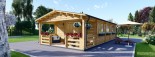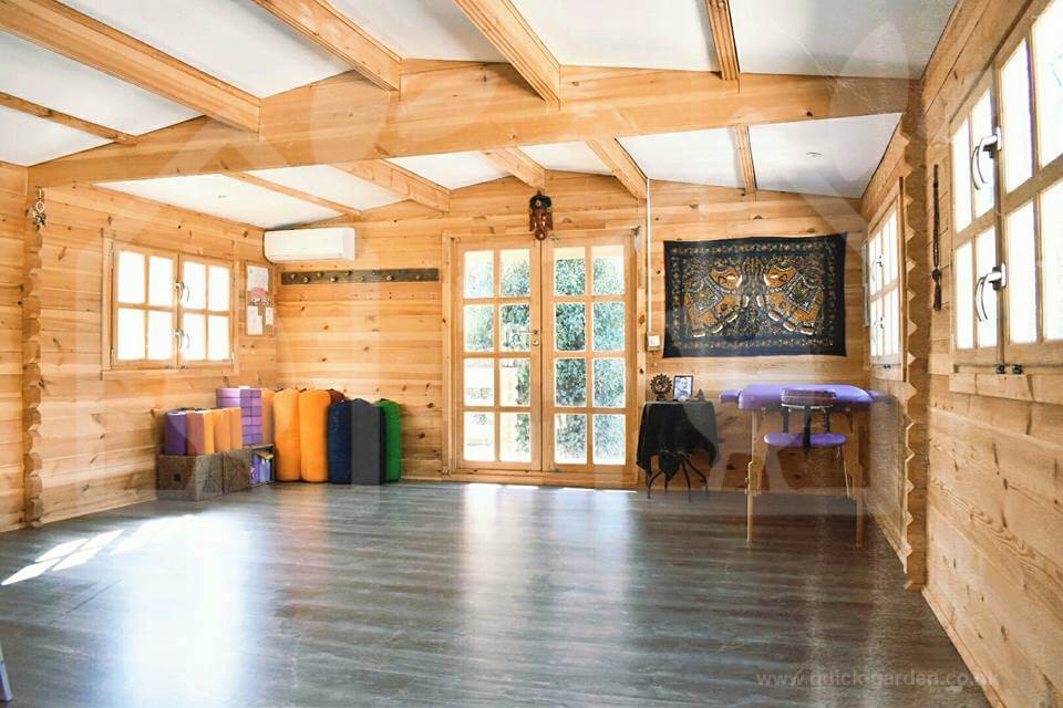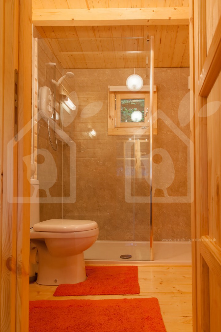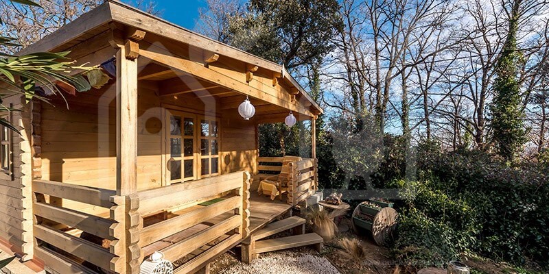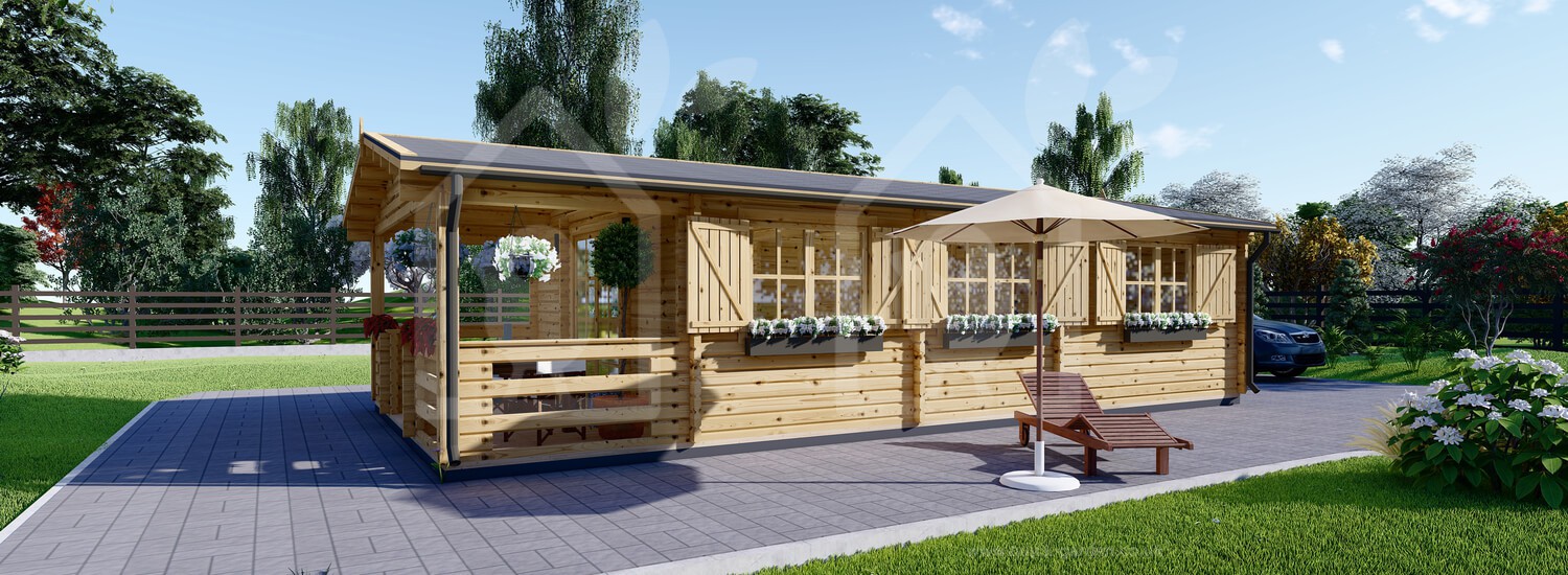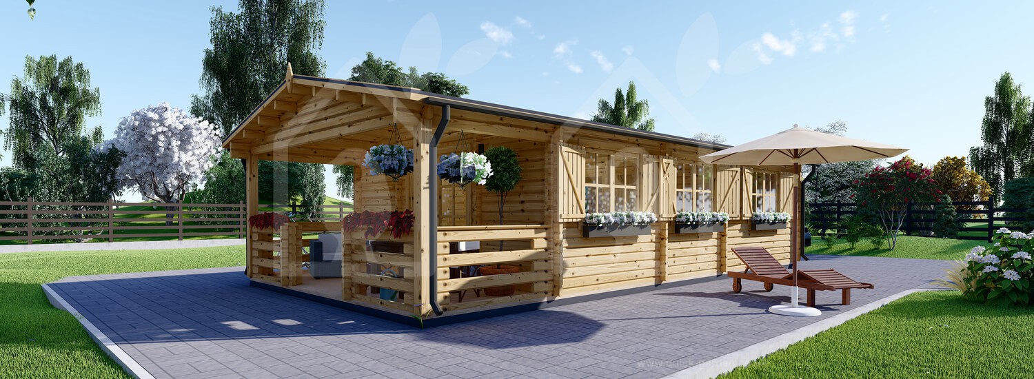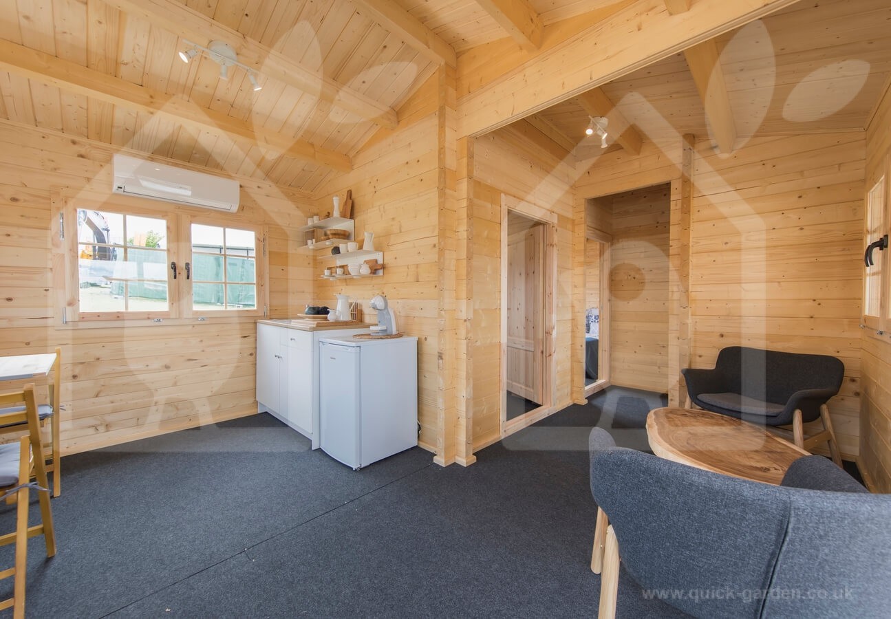 The 17 X 27 Hymer log cabin has extra thick 2.6” walls formed from Scandinavian conifer wood that provide exceptional insulation. That is almost an inch thicker than standard. The roof and floor boarding is all 0.8” for a consistent finish. Thanks to the high-density timber, each piece of wood has an anti-rot guarantee covering 10 years. With double-glazed windows that feature wooden shutters, the Hymer log cabin’s look and quality are divine.