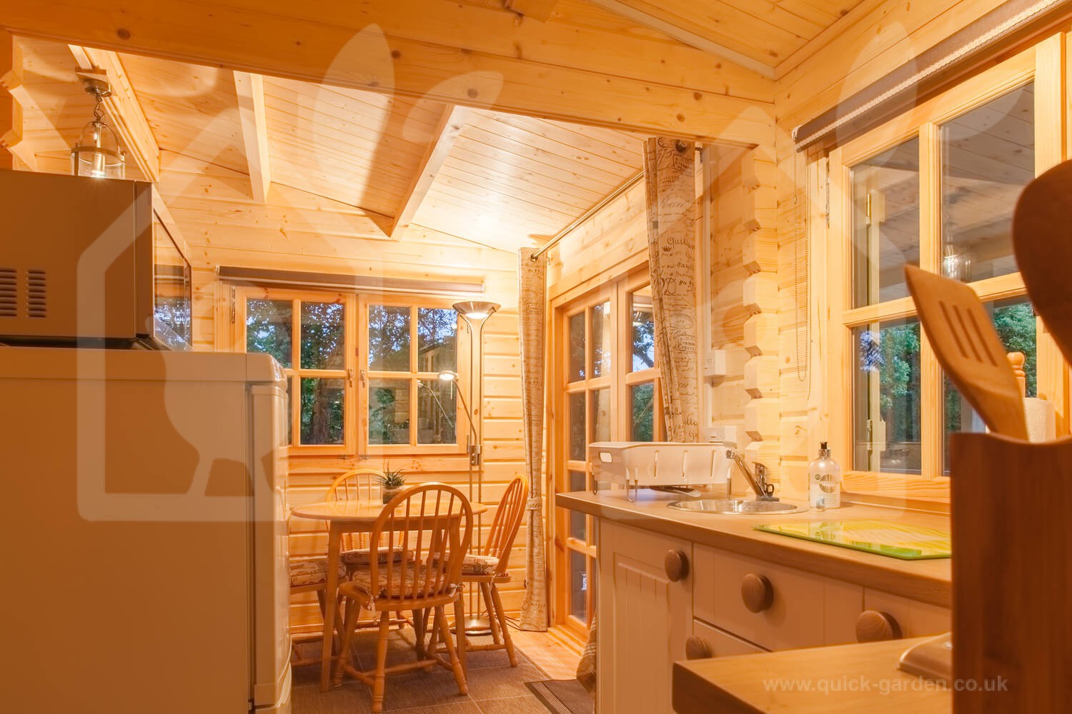 Our log cabins come with double-glazed windows and doors that employ finger-joint technology that significantly reduces moisture in the building.