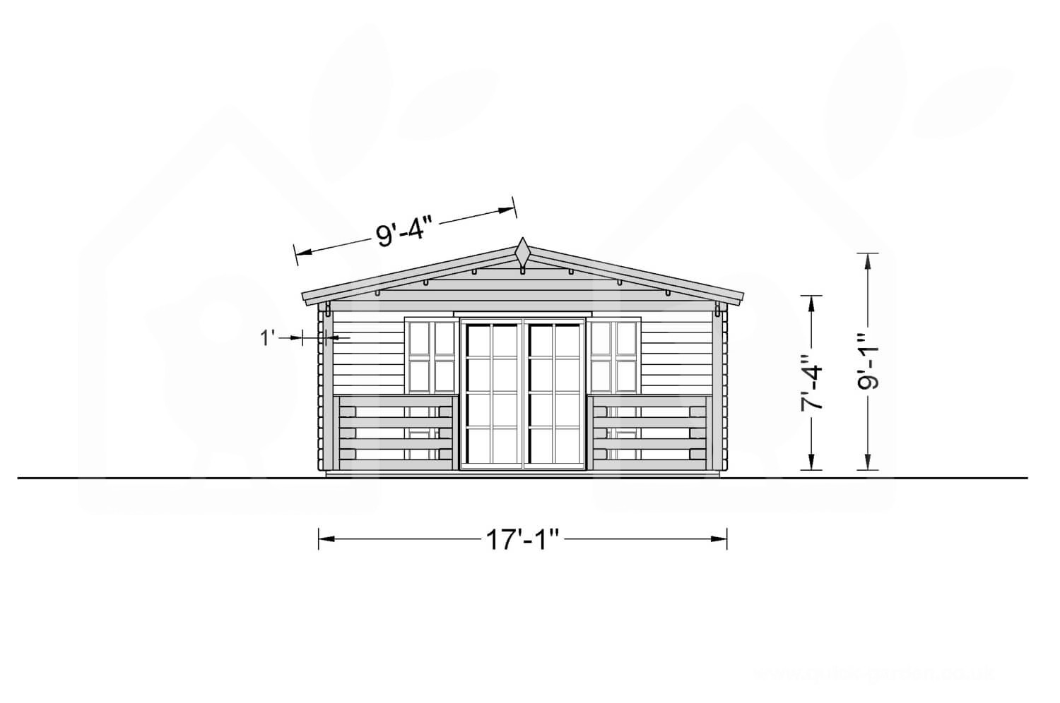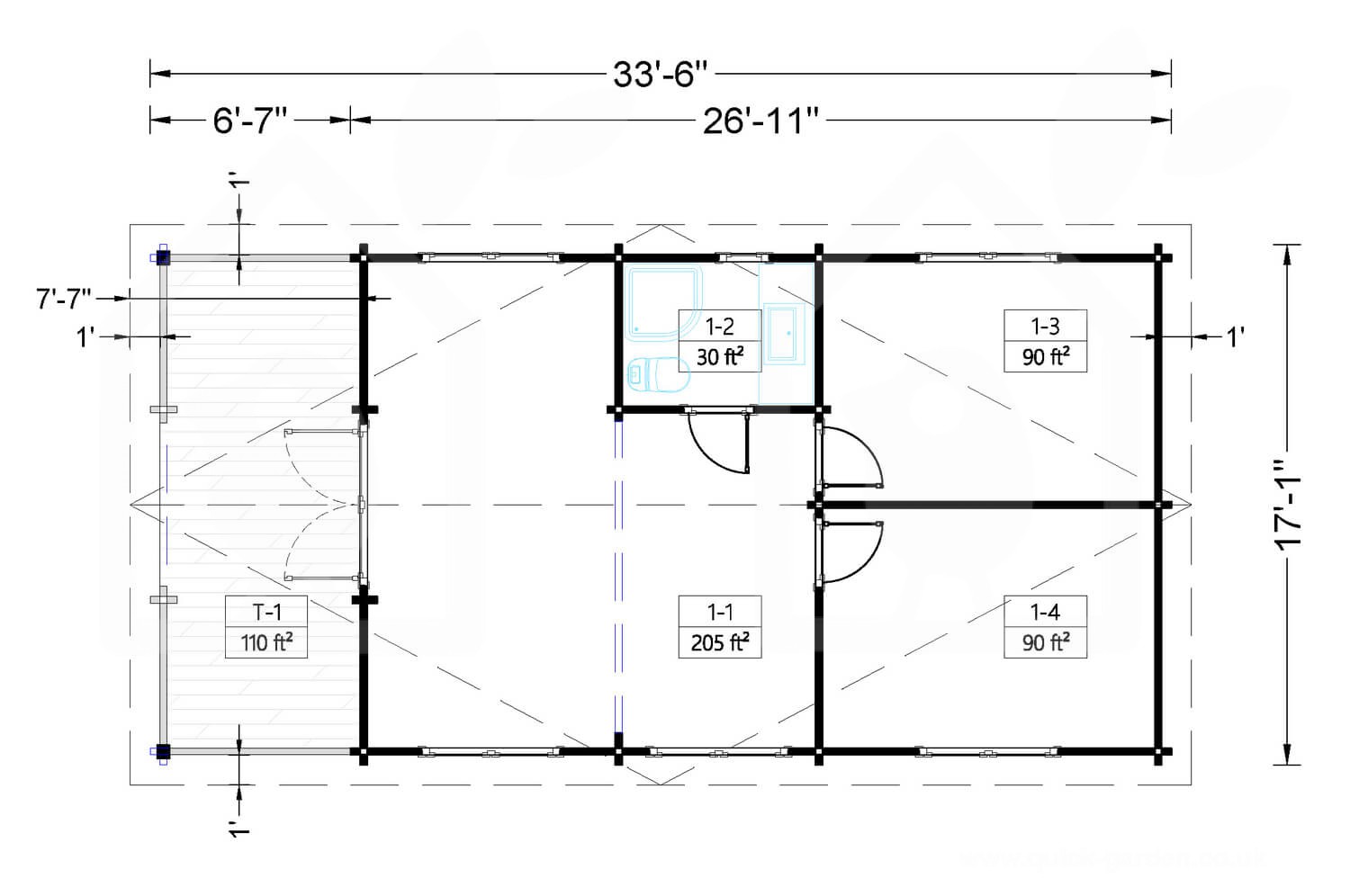 | External dimensions (width x depth) | 17'1" x 26'11" + 6'7" |