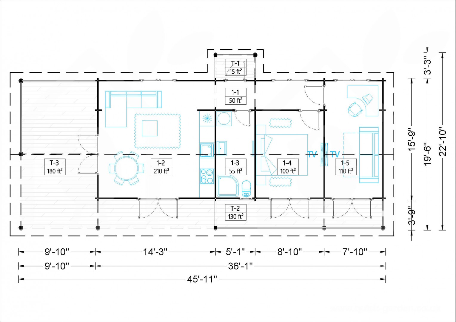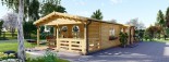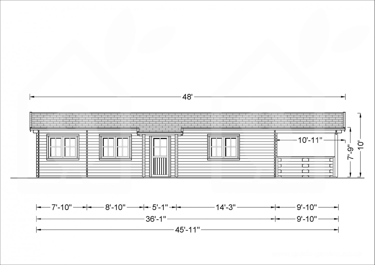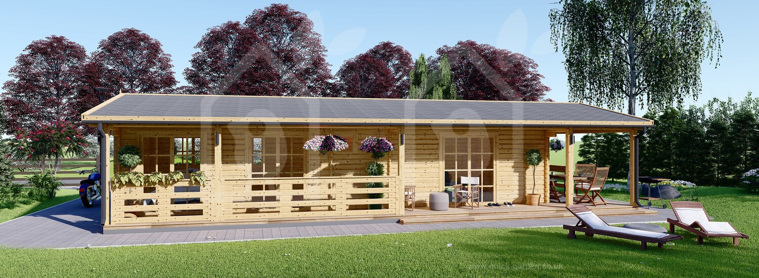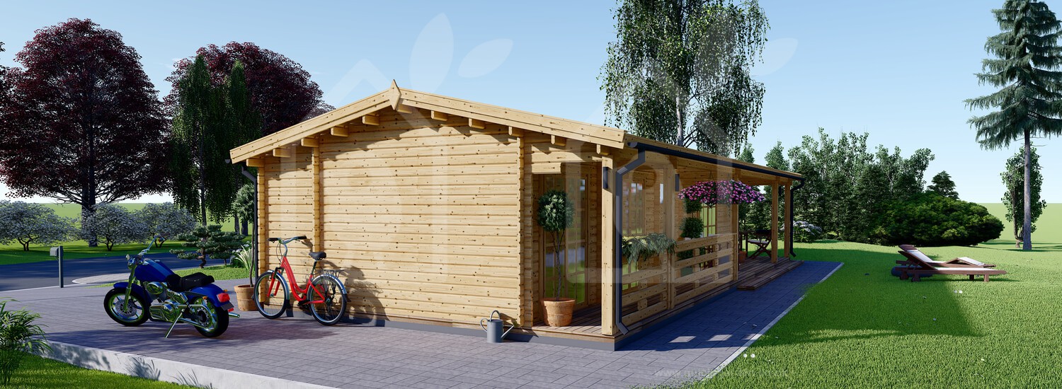 2.7 inch thick walls ensures that this log cabin can be used during any season. Our standard windows and doors all come double glazed with finger joint technology, dramatically increasing their resistance to moisture and mold. You can personalize the look of your cabin by choosing the roof covering in red, dark green, or black.