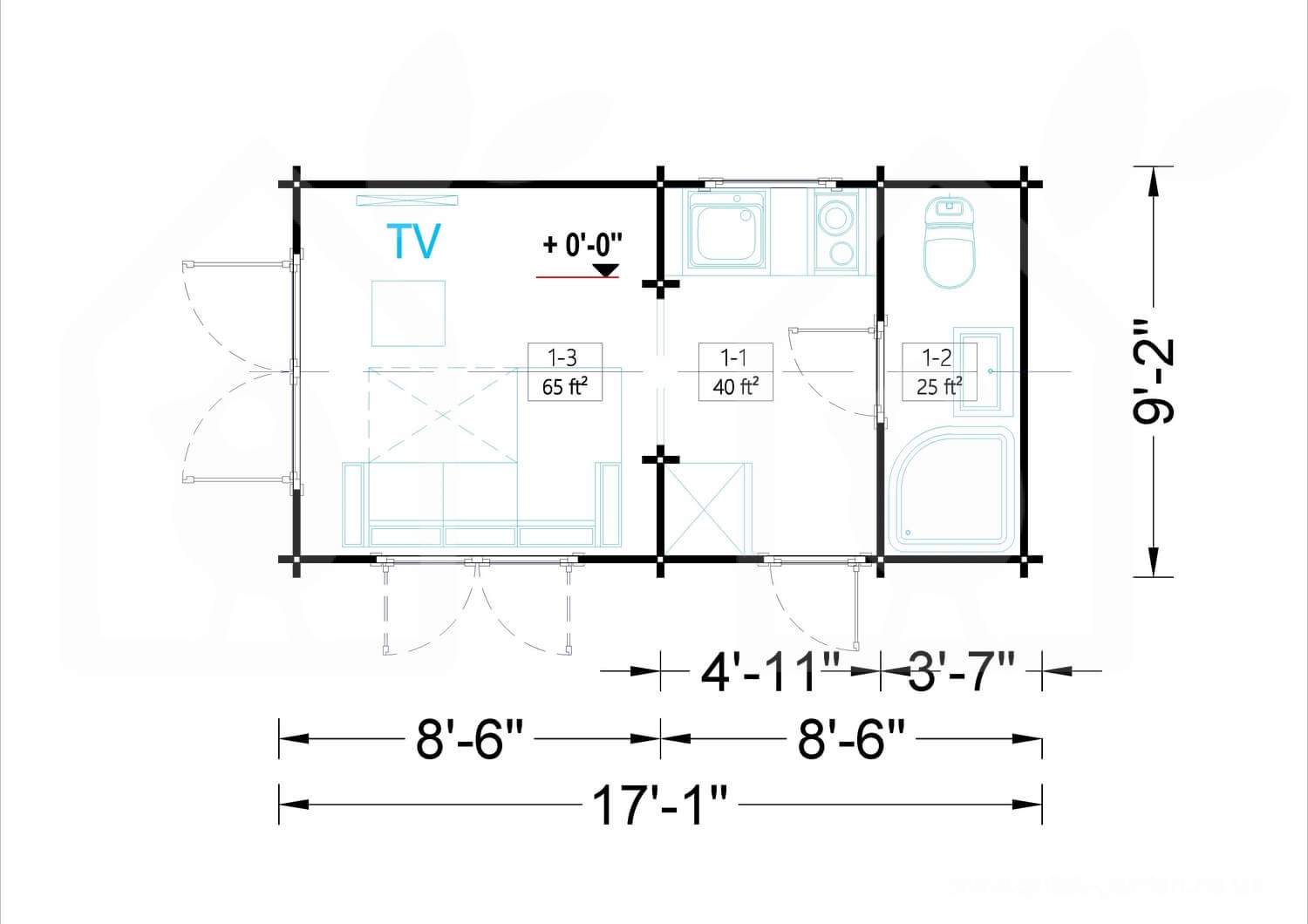 | External dimensions (width x depth) | 17'1" x 9'2" |