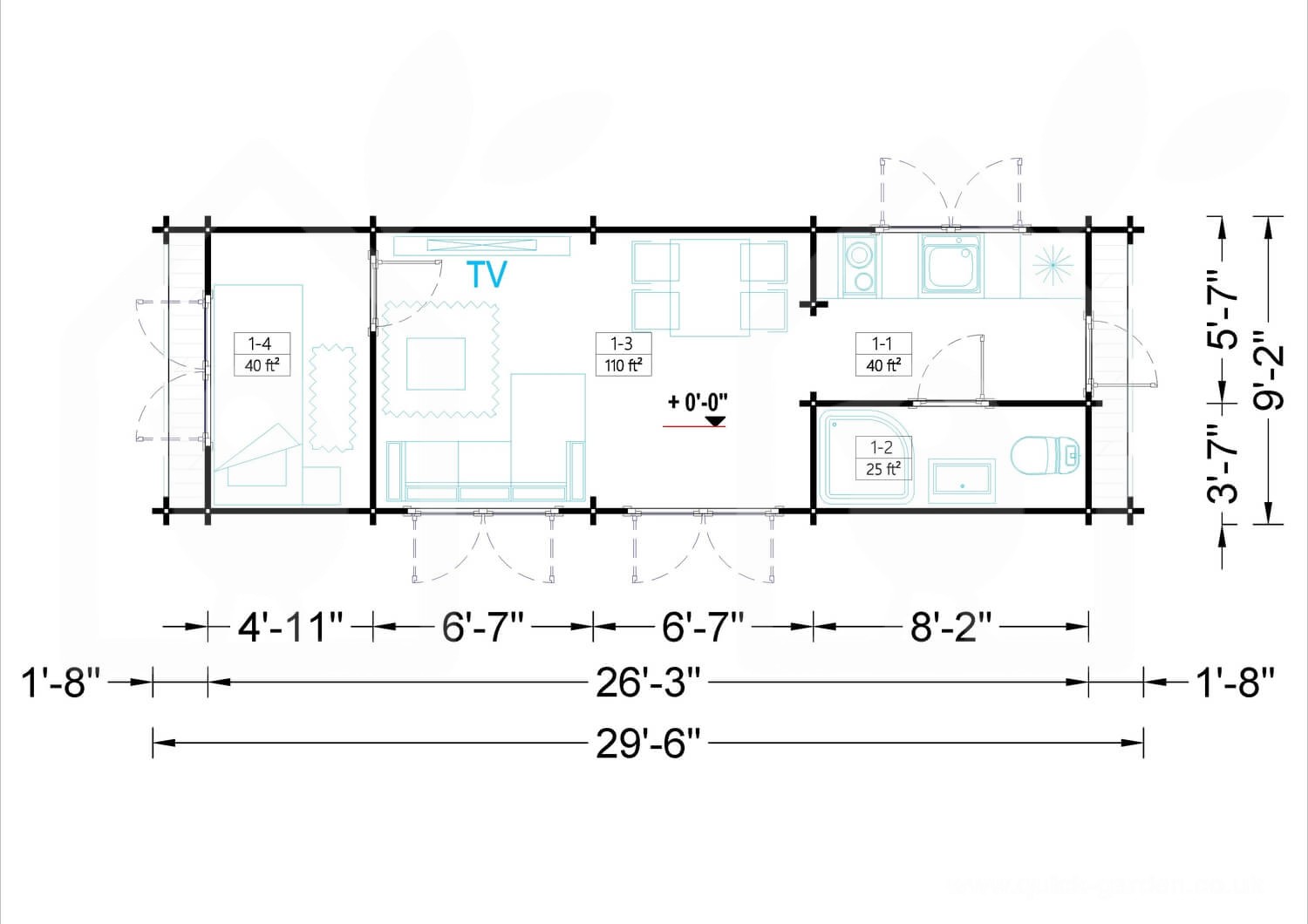 | External dimensions (width x depth) | 29'6" x 9'2" |