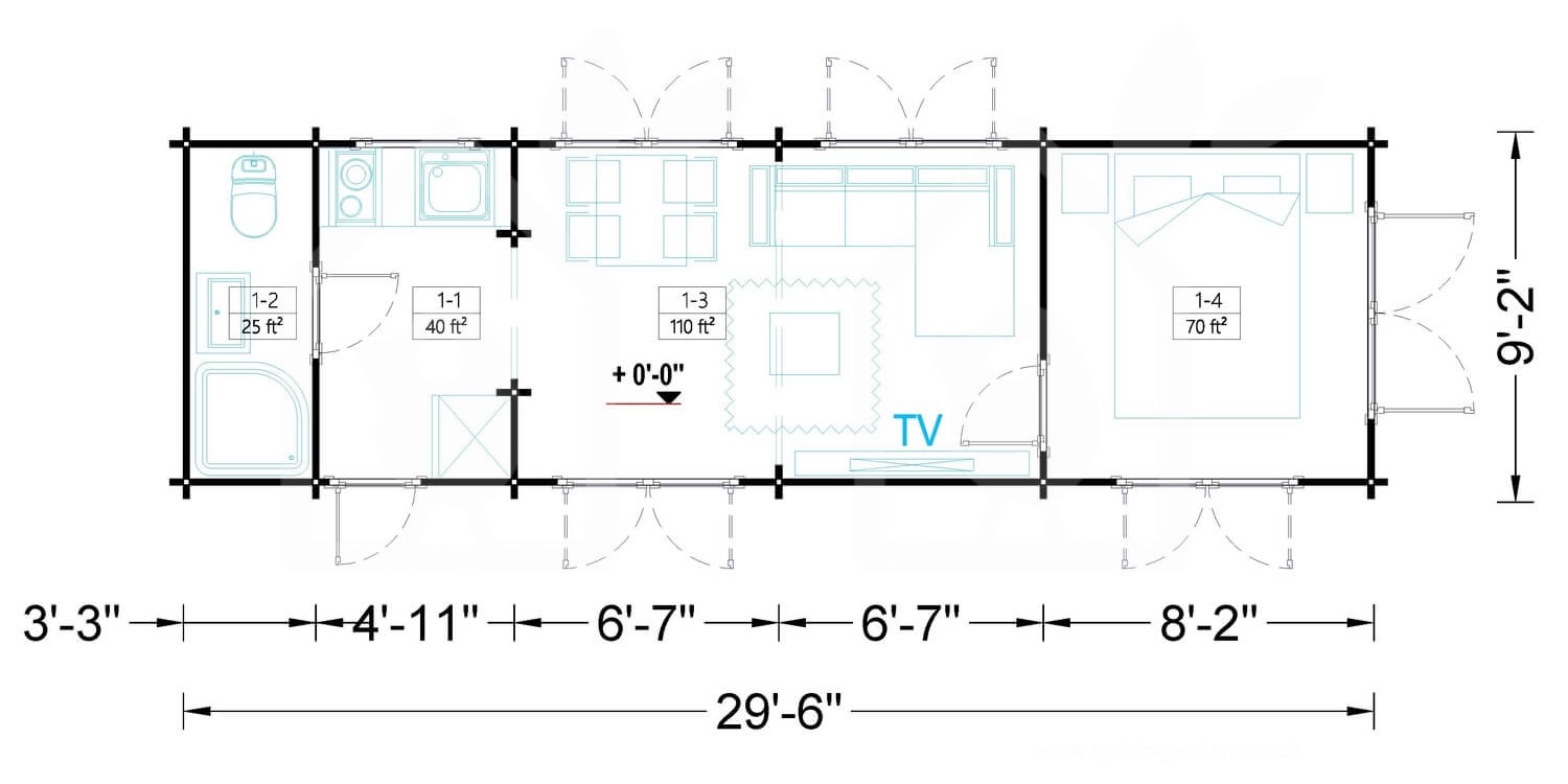 | External dimensions (width x depth) | 29'6" x 9'2" |