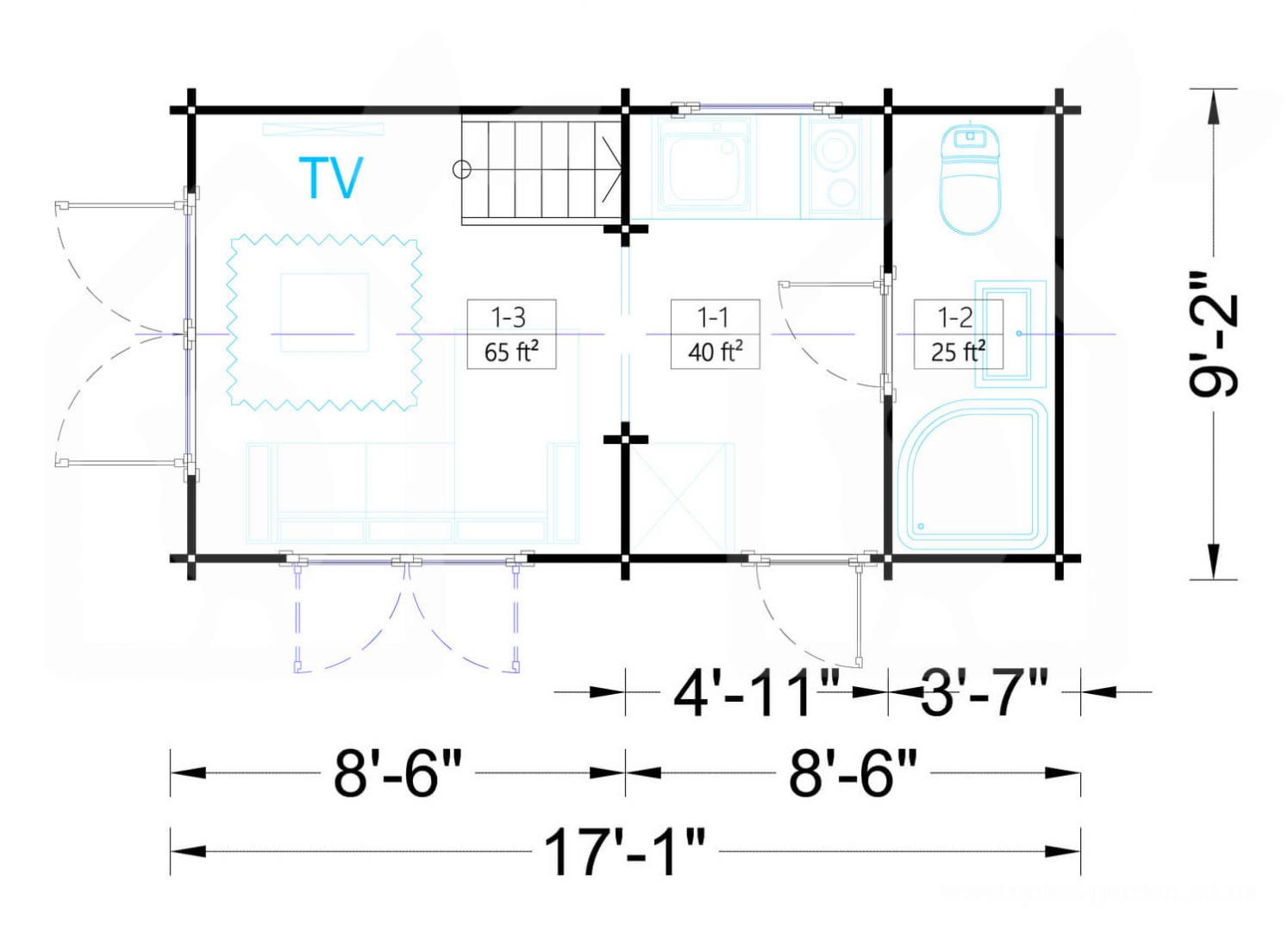 | External dimensions (width x depth) | 17'1" x 9'2" |