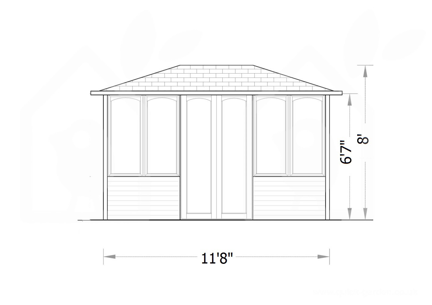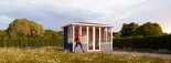 The structure is made of easy to install solid panels, so assembly is a breeze. Slow-grown Scandinavian Spruce guarantees longevity, better anti-rot protection, and a superb look for our Wooden Shed A 12' x 8'. The design comes with large windows and fully glazed doors, which ensure a beautiful, natural-light interior.