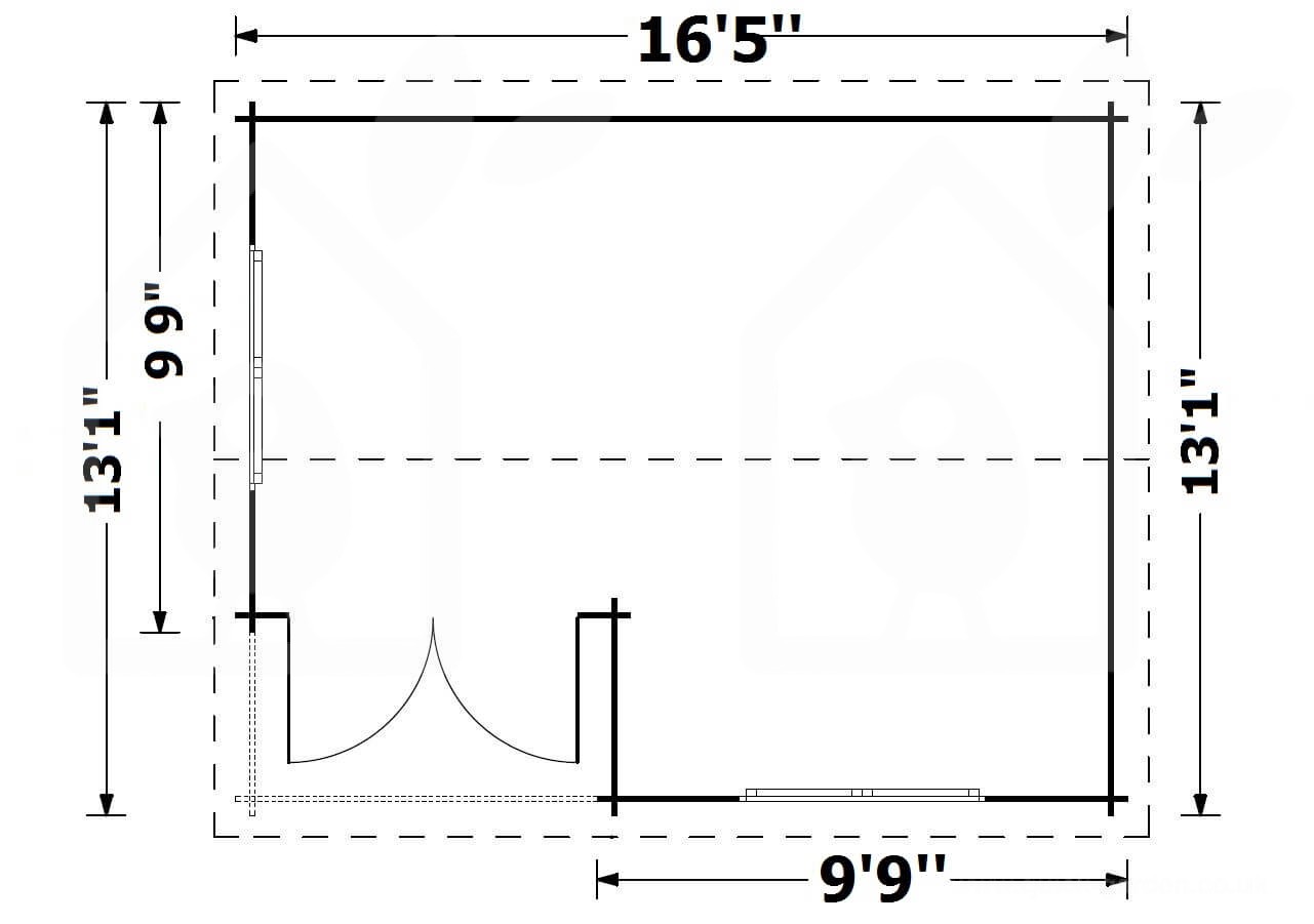 | External dimensions (width x depth) | 16'5" x 13'1" |