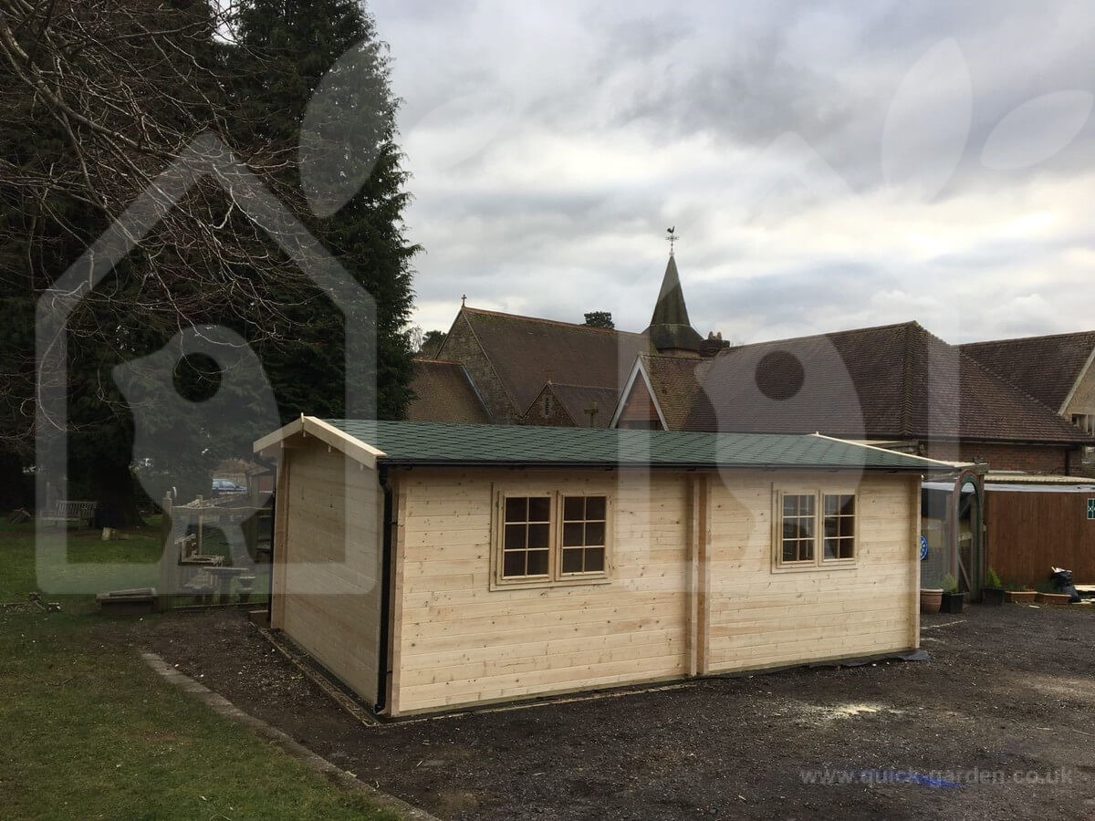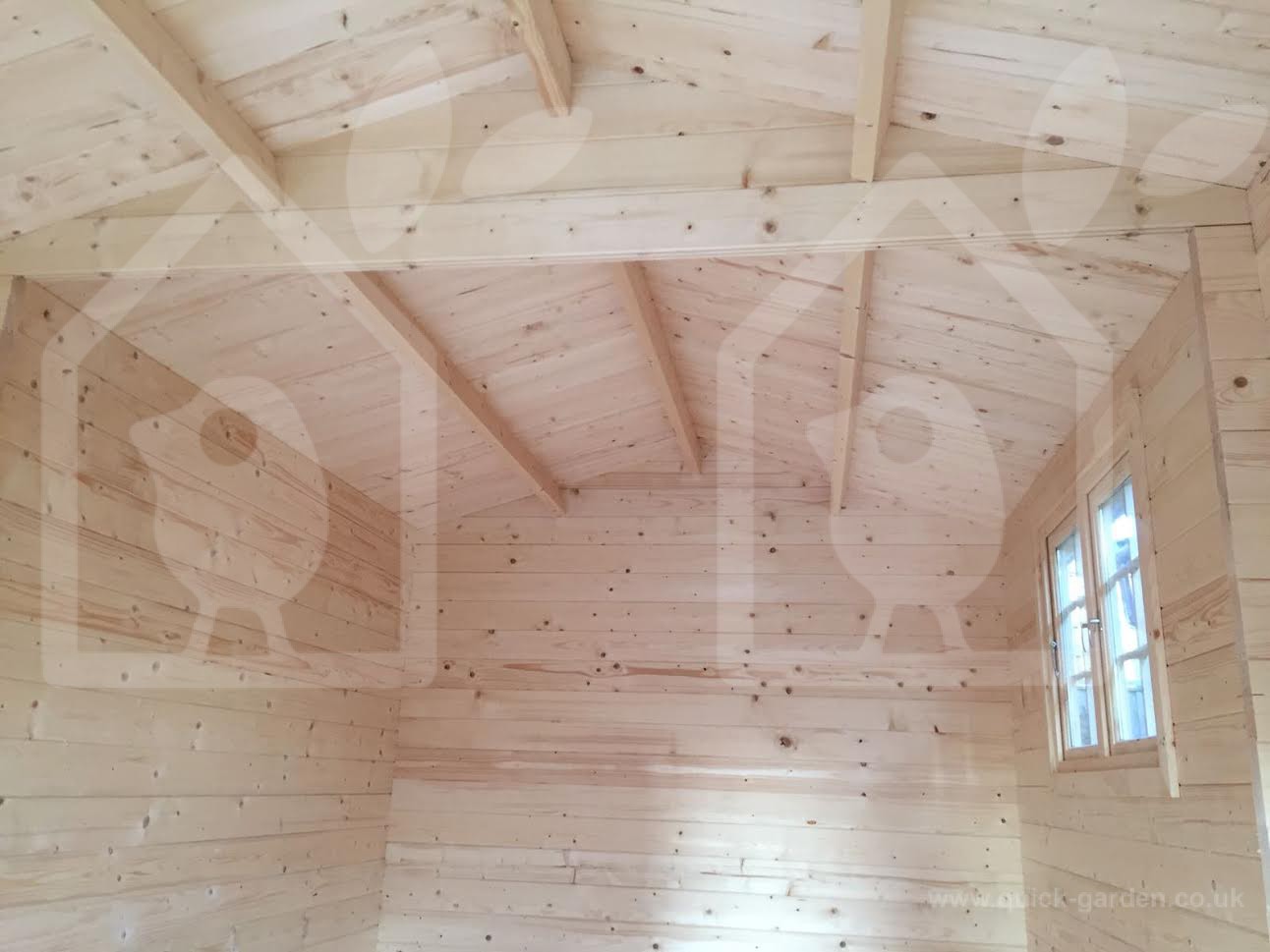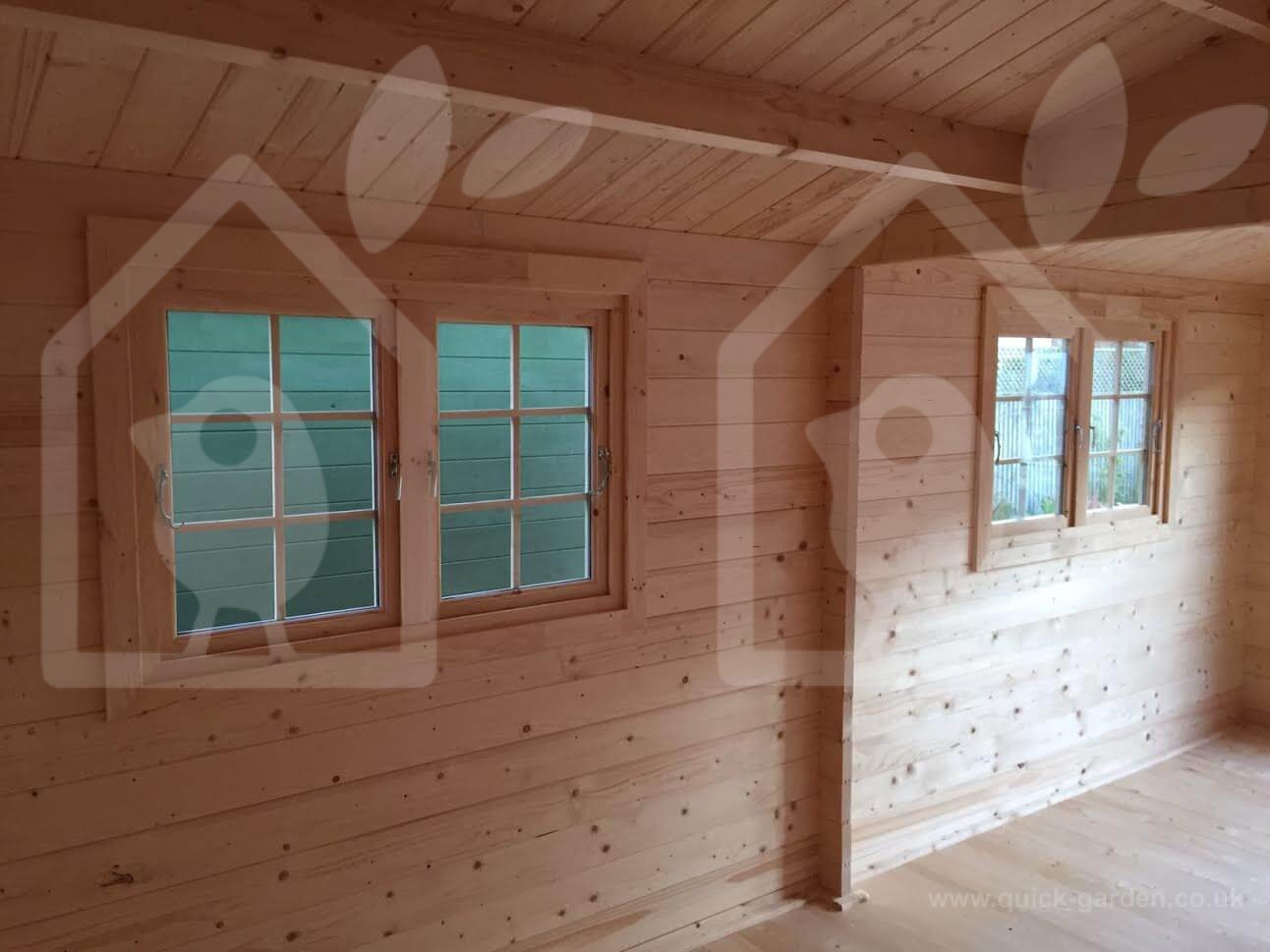 The Stronghold wooden shed’s construction utilizes 1.7” timbers for the walls and 0.8” timbers for the tongue and groove roof and floor panels. All of our slowly grown timber has a fantastic 10-year anti-rot guarantee. The double-glazed windows have double sheets of glass that are 0.2'' thick each. You can upgrade to our 5-layer bitumen roofing shingles for an extra layer of protection if you wish.