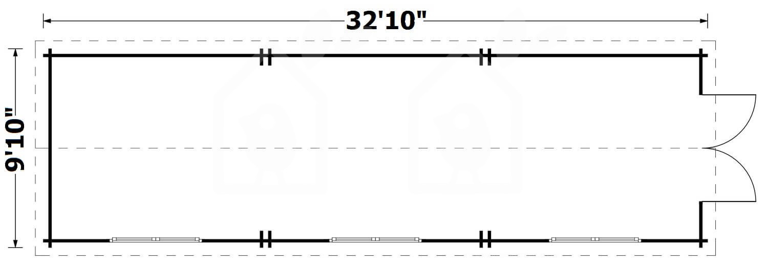 | External dimensions (width x depth) | 9'10" x 32'10" |
