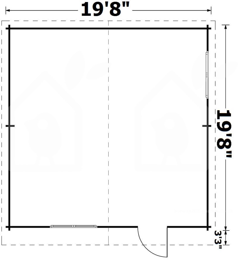 | External dimensions (width x depth) | 19'8" x 19'8" |