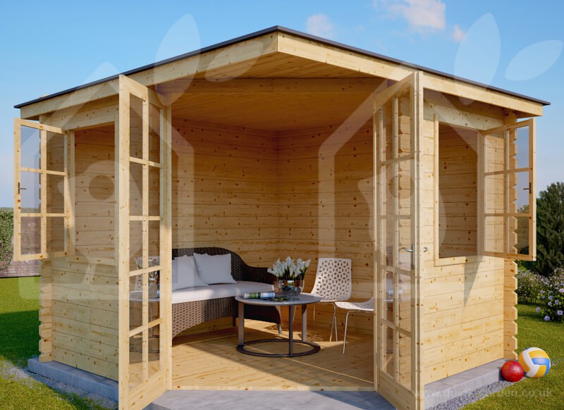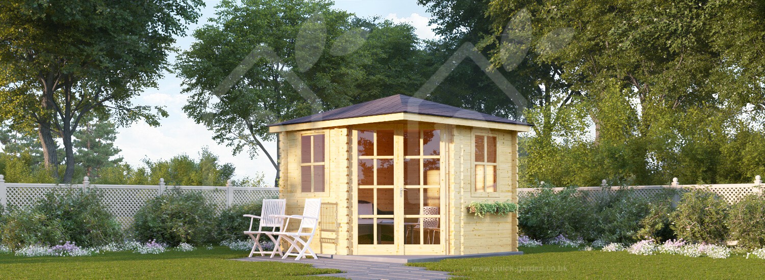 Everything you need for this summer house is included, from the wood flooring kit to the 1.1” wall logs. Assembly is easy and the finished product is so impressive. The Scandinavian spruce used throughout is slow grown for fantastic insulation and has a 5-year guarantee against rotting. You can be sure of secure locks to protect everything. A high-quality building that will impress again and again.